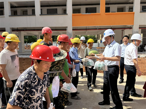 中國(guó)新報(bào)湖南訊 (通訊員 鄧小山 魏剛 廖承雄 記者 符秋祖) 夏日炎炎送清涼,絲絲關(guān)懷沁人心。7月17日,衡陽(yáng)高新區(qū)黨工委書記秦振衡率隊(duì)先后深入二塘安置房、南華智能制造科技產(chǎn)業(yè)園(一期)和高嶺小學(xué)項(xiàng)目工地,現(xiàn)場(chǎng)調(diào)度項(xiàng)目建設(shè)并慰問一線工作者,將“清涼禮包”和黨的關(guān)懷送到一線工作者心坎上。