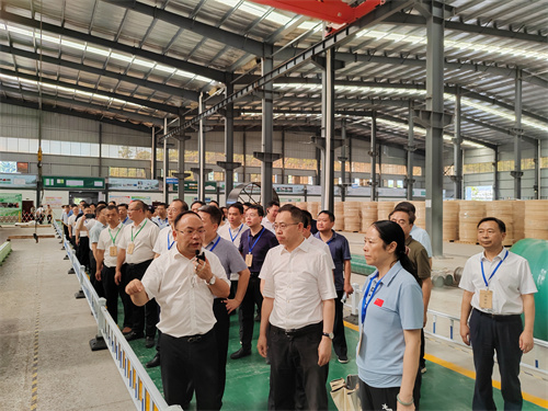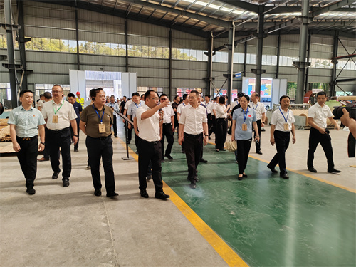 (與會(huì)人員深入考察湖南九通竹基復(fù)合材料制造有限公司)