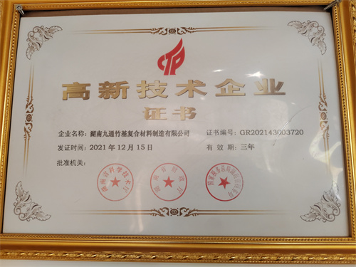 (湖南九通竹基復(fù)合材料制造有限公司是一家高新技術(shù)企業(yè))
