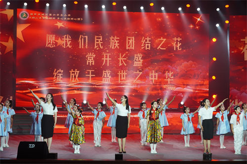 2024年7月7日,在“中華民族一家親,石榴花開(kāi)心向黨”為主題的民族團(tuán)結(jié)文化周聯(lián)歡晚會(huì)上,邵東市城區(qū)六完小師生出演《同心共育石榴籽 齊心共繪同心圓》