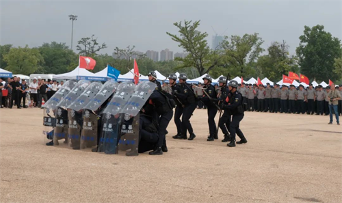 宣傳活動(dòng)采取制作宣傳展板、設(shè)立形象展示臺、保安企業(yè)宣傳單以及保安器材展示等方式,對保安服務(wù)相關(guān)的法律法規(guī)和國家政策、警保聯(lián)動(dòng)、公安機(jī)關(guān)便民利民措施開展宣傳。活動(dòng)現(xiàn)場由陜西秦泰保安服務(wù)有限公司等9家保安服務(wù)企業(yè)分別進(jìn)行了無人機(jī)反制表演、交通手勢、消防技能演示、警用盾牌術(shù)、安檢手勢操、校園應(yīng)急處置、軍體拳、反恐防暴、押運(yùn)勤務(wù)反劫持演練、保安護(hù)衛(wèi)犬表演等科目匯報(bào)演練,向社會(huì)各界展示了保安行業(yè)發(fā)展情況與保安隊(duì)伍建設(shè)的良好風(fēng)貌。