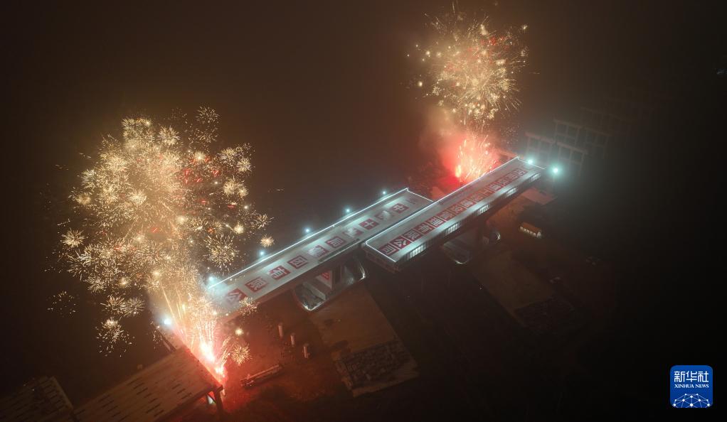 7月24日,小戶尚公鐵立交橋轉(zhuǎn)體成功(無人機(jī)照片)。