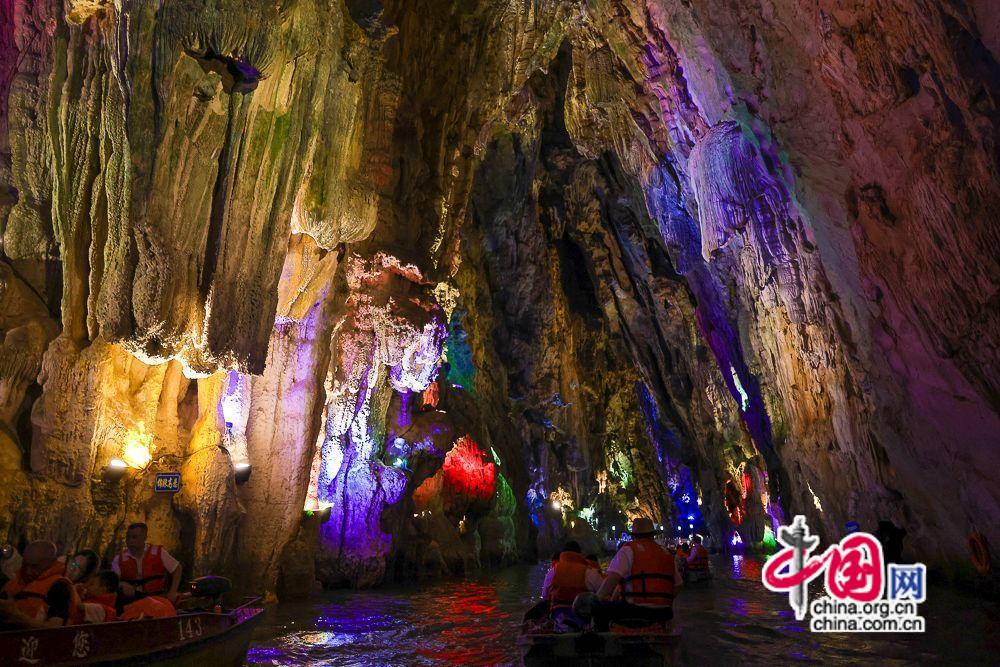貴州省安順市龍宮景區(qū)擁有全國最長的水溶洞,洞內(nèi)鐘乳千姿百態(tài),其洞廳構(gòu)造宛如神話中的龍王宮殿。 中國網(wǎng)記者 董寧 攝影