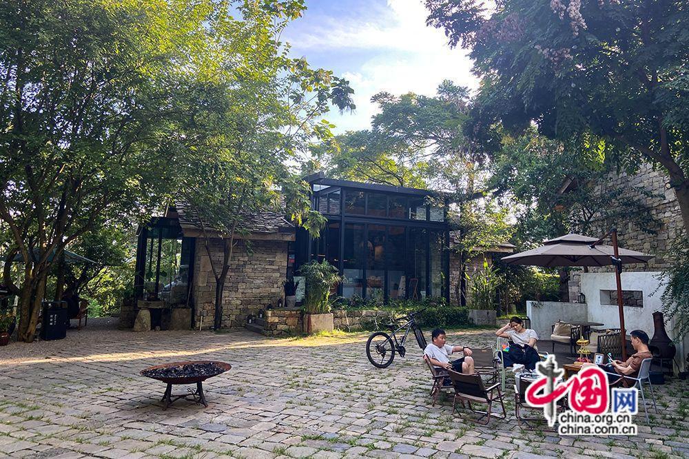7月17日,游客在安順市匠廬·村曉民宿院落享受休閑時光。中國網(wǎng)記者 董寧攝影