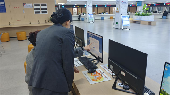 工作人員正在指導(dǎo)市民辦理業(yè)務(wù)。