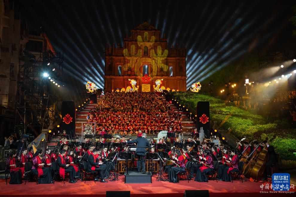 當(dāng)日,2024年“歡樂春節(jié)”啟動儀式暨“歡樂春節(jié) 春滿濠江”音樂會在澳門大三巴牌坊前舉行。