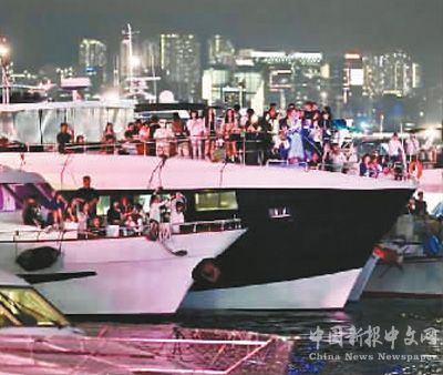 歌迷搭乘游艇在中環(huán)海濱觀看演唱會(huì)。 |