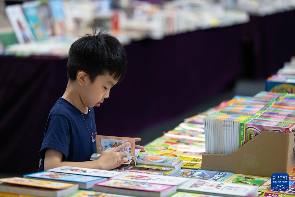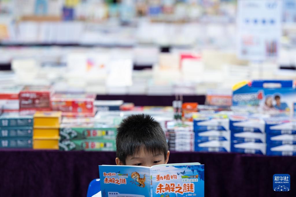 7月5日,小朋友在第二十七屆澳門書市嘉年華上看書。