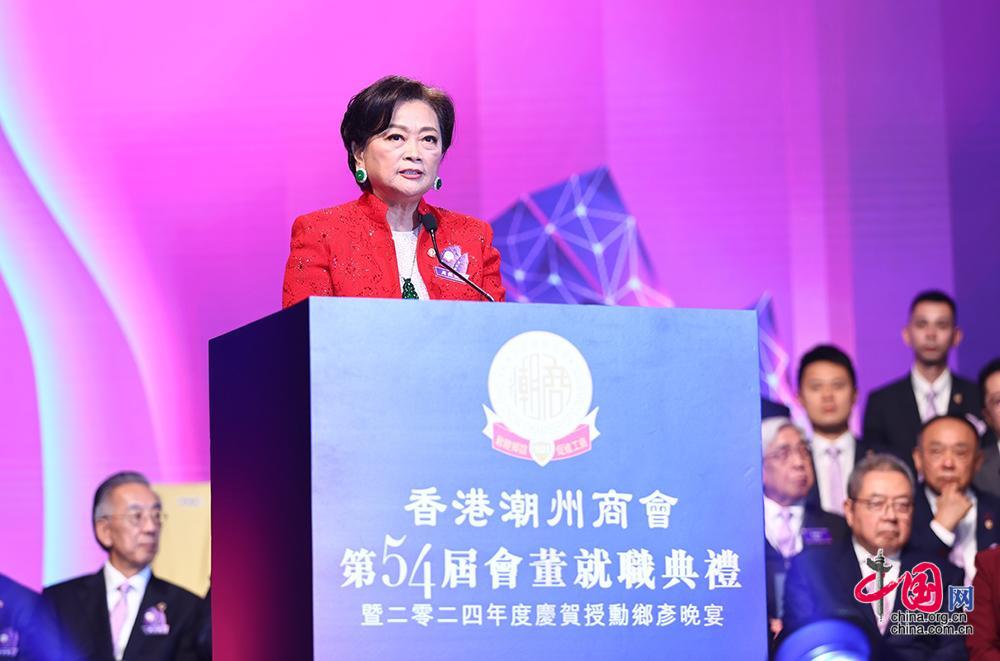 中國網(wǎng)香港訊(記者 戴凡 王一辰)12月2日,備受矚目的香港潮州商會第54屆會董就職典禮在香港會議展覽中心舉行,高佩璇成為商會成立103年來的首任女會長。全國政協(xié)常委、港澳臺僑委員會主任劉賜貴、中央政府駐港聯(lián)絡(luò)辦副主任劉光源、前任行政長官曾蔭權(quán)、林鄭月娥,以及本港政商學(xué)界等社會各界知名人士出席就職禮。商會成員及海內(nèi)外嘉賓逾千人歡聚一堂,鄉(xiāng)情洋溢。