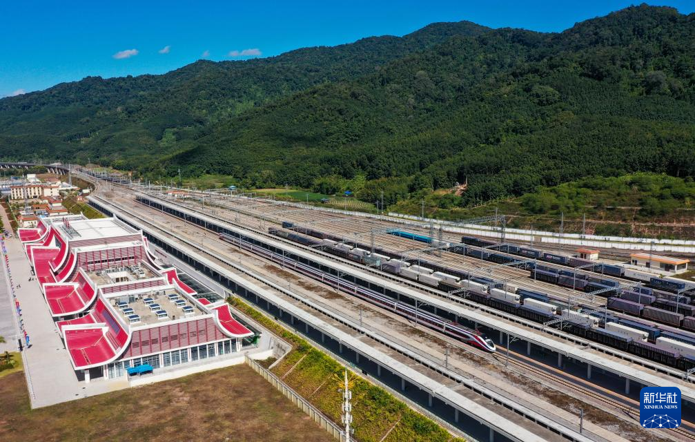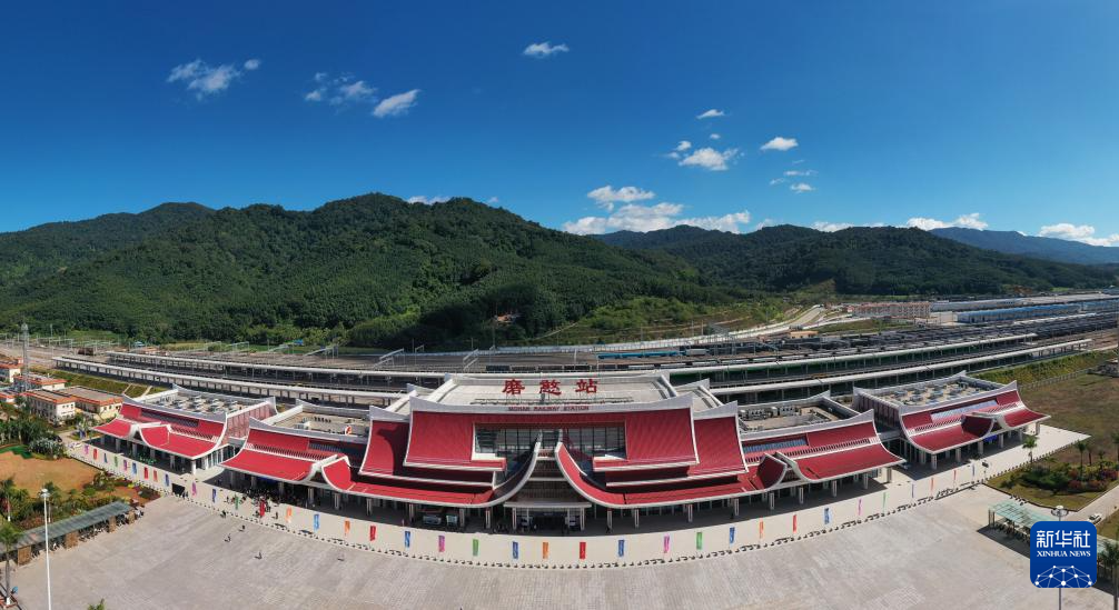 這是12月3日拍攝的中老鐵路磨憨站(無人機(jī)全景照片)。