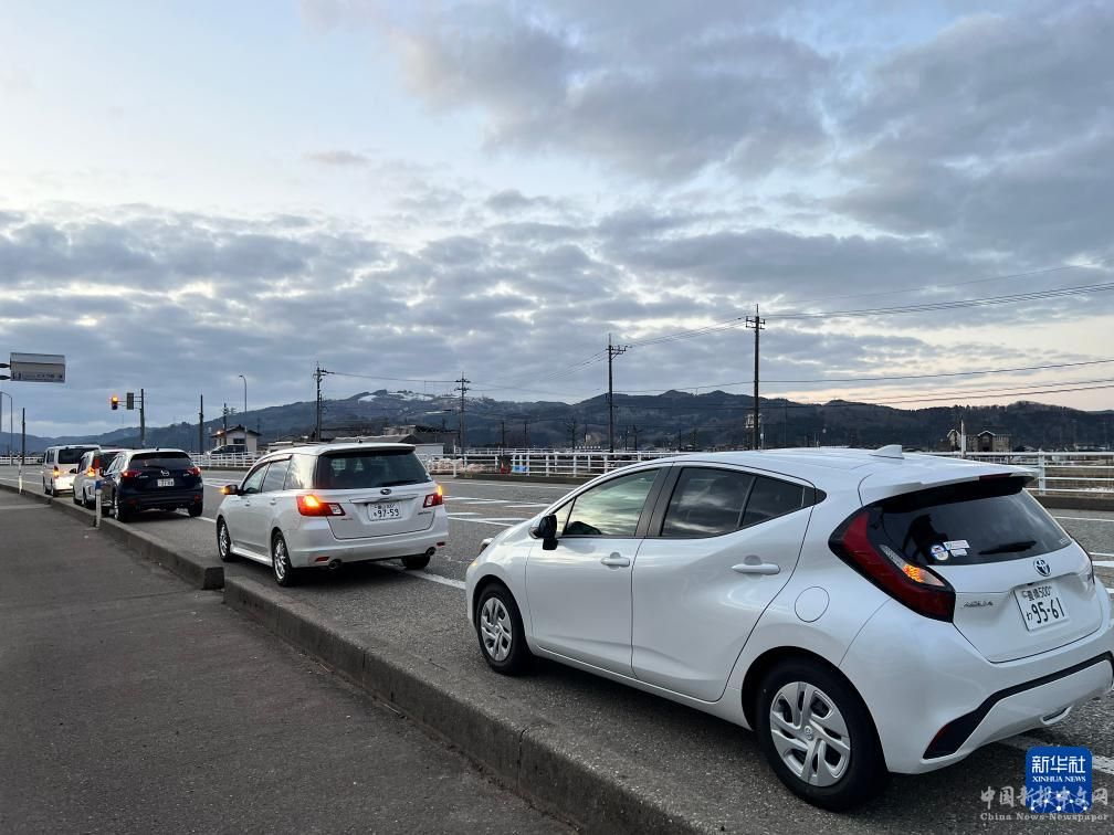 1月1日,汽車停在日本富山縣小矢部市的高速出口處,等待新的消息。