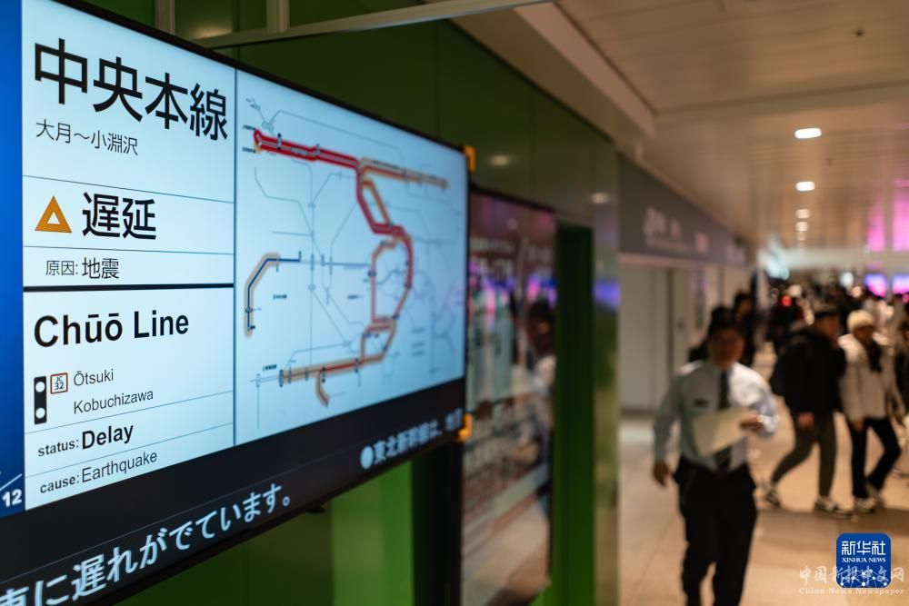 1月1日,在日本東京新宿車站,列車運營時刻表顯示列車因地震延誤。