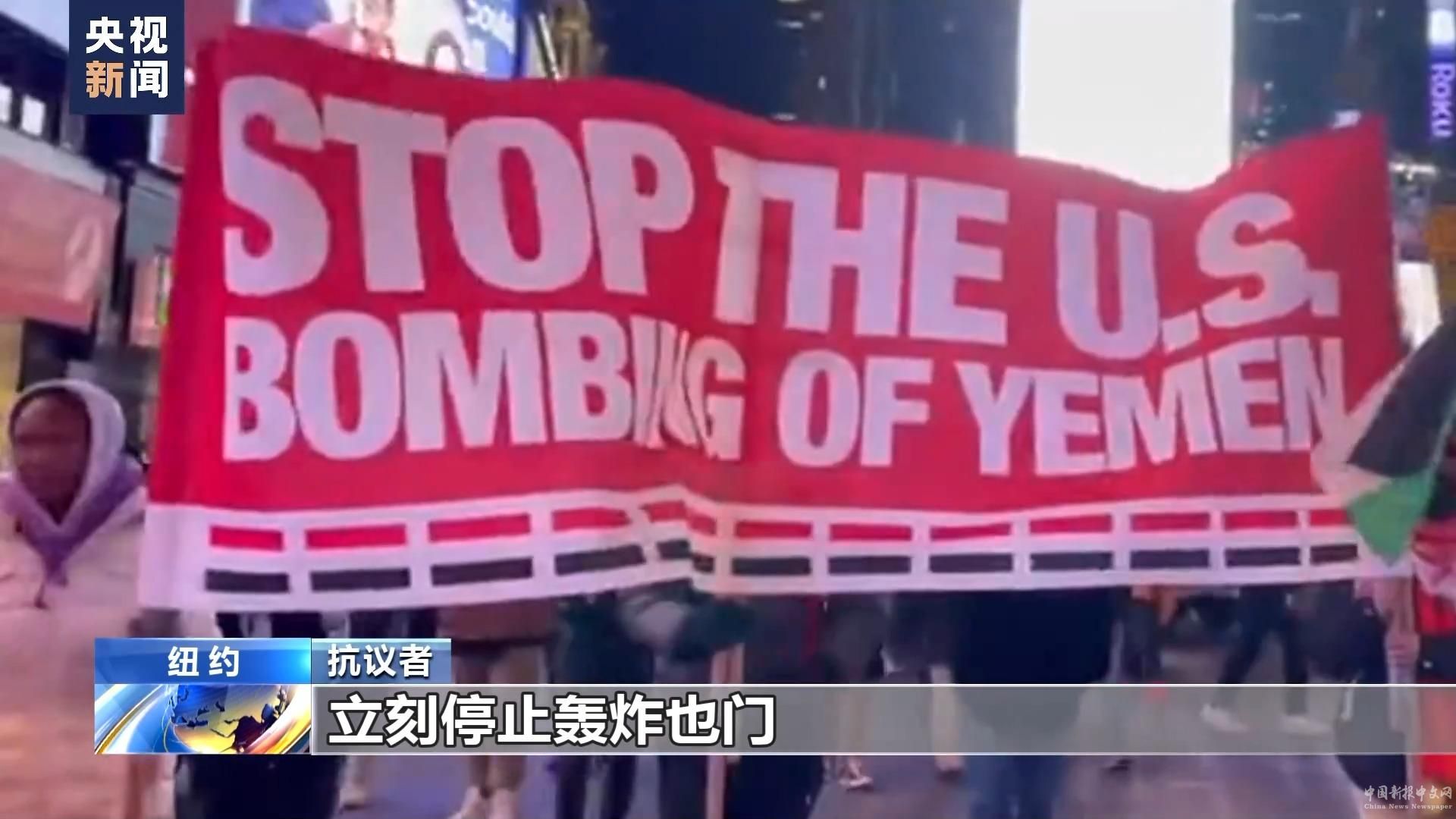 當(dāng)晚,白宮抗議者手舉“立即離開也門”等標(biāo)語,要求美國及其盟友停止插手中東地區(qū)事務(wù)。