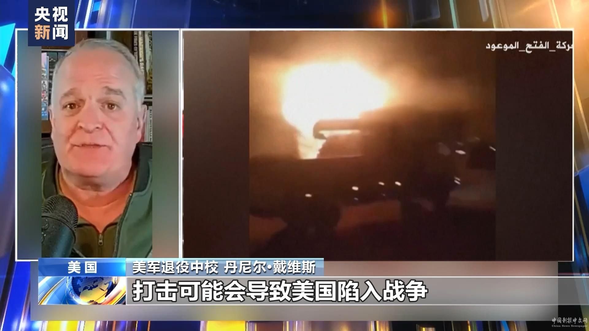 美軍退役中校 丹尼爾•戴維斯:沖突隨時都有可能進(jìn)一步升級,因?yàn)楹溲b明確表示,如果美國在它們的領(lǐng)土上進(jìn)行打擊,它們會攻擊美國人和美國在這一地區(qū)的利益。我們(美國)的計劃是什么?打擊可能會導(dǎo)致美國陷入戰(zhàn)爭。
