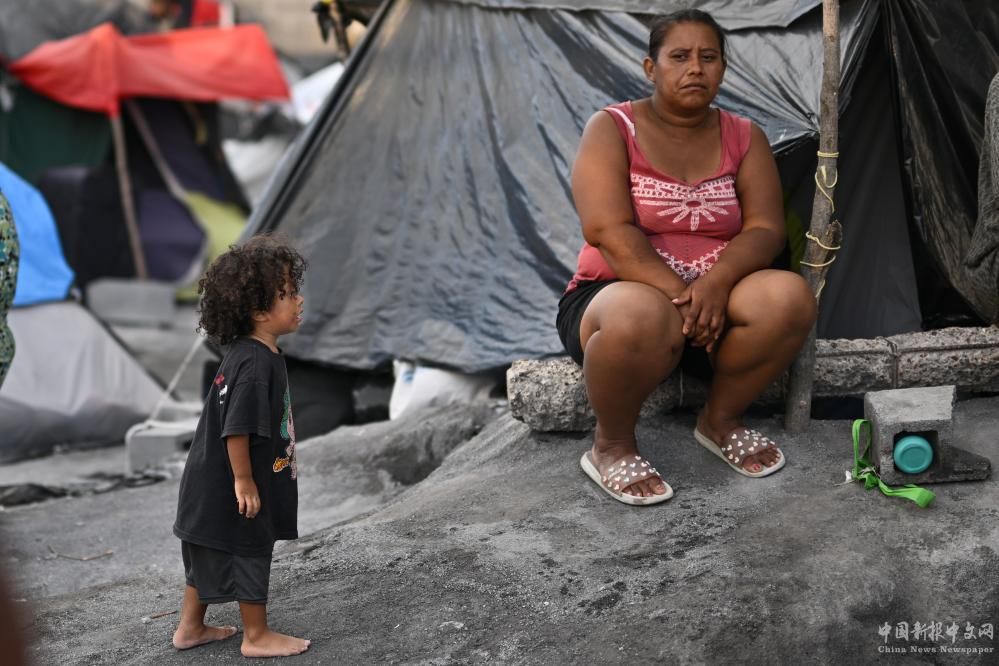 這是2023年5月16日在美墨邊境城市墨西哥雷諾薩的一處收容所內(nèi)拍攝的移民。新華社記者辛悅衛(wèi)攝