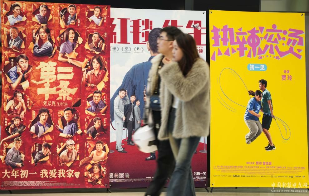 這是2月17日,在沈陽一家影院,觀眾從海報(bào)前經(jīng)過。新華社記者李鋼攝