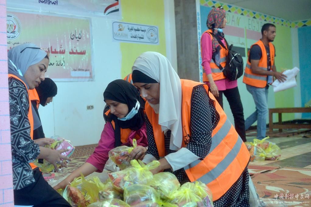 2023年5月2日,在埃及南部阿斯旺省,工作人員為逃離蘇丹進(jìn)入埃及的難民準(zhǔn)備救濟(jì)包裹。新華社發(fā)(拉德萬攝)