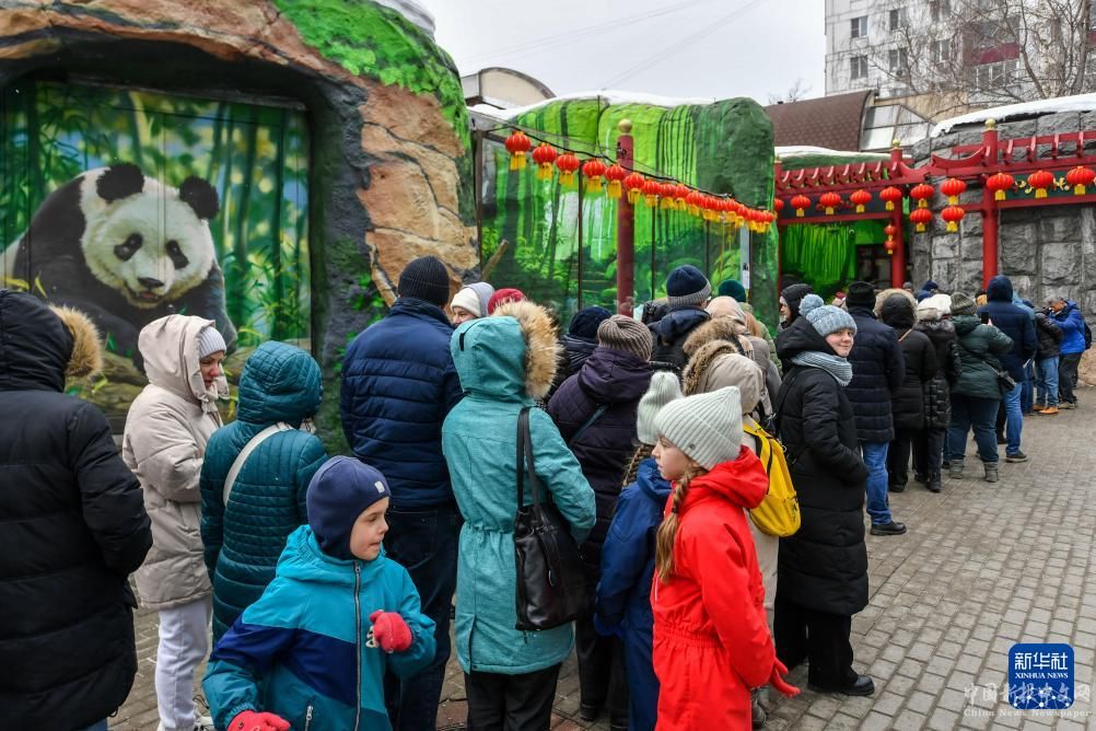 3月8日,人們?cè)诙砹_斯莫斯科動(dòng)物園排隊(duì)等待觀看大熊貓“喀秋莎”。