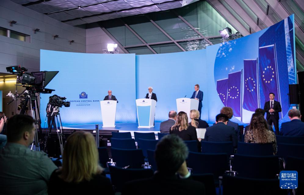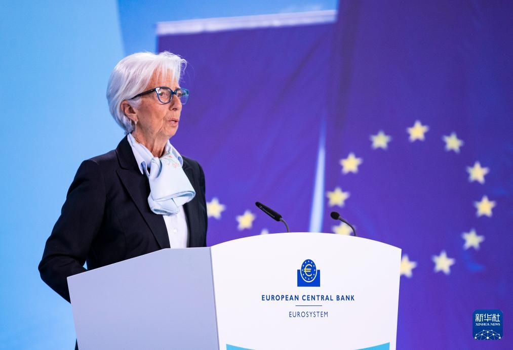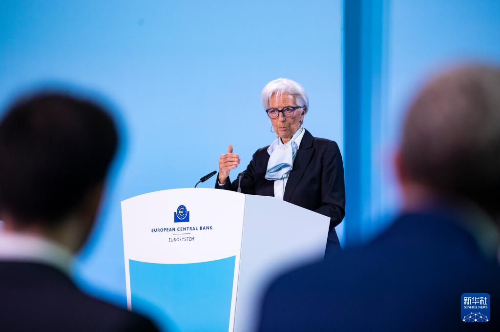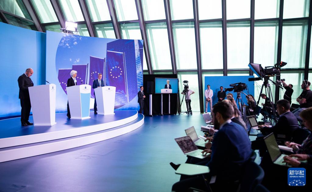 4月11日,歐洲中央銀行行長(zhǎng)拉加德在德國(guó)法蘭克福歐洲中央銀行總部出席新聞發(fā)布會(huì)。