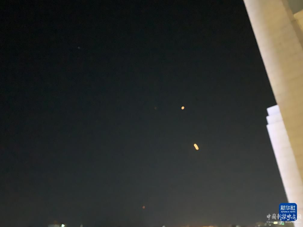 這張4月14日的視頻截圖顯示,敘利亞首都大馬士革上空出現(xiàn)火球。