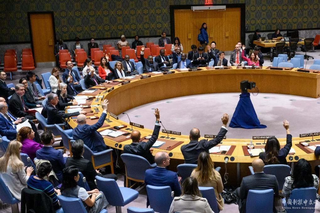 這是2023年10月19日在位于紐約的聯(lián)合國(guó)總部拍攝的決議草案投票現(xiàn)場(chǎng)。新華社發(fā)(聯(lián)合國(guó)供圖/洛伊·費(fèi)利佩攝)