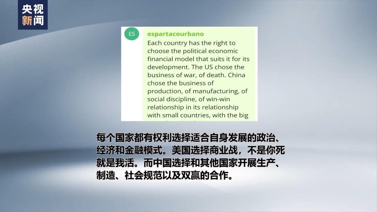 也有網(wǎng)友理性分析說(shuō),“每個(gè)國(guó)家都有權(quán)利選擇適合自身發(fā)展的政治、經(jīng)濟(jì)和金融模式。美國(guó)選擇商業(yè)戰(zhàn),不是你死就是我活。而中國(guó)選擇和其他國(guó)家開展生產(chǎn)、制造、社會(huì)規(guī)范以及雙贏的合作。”