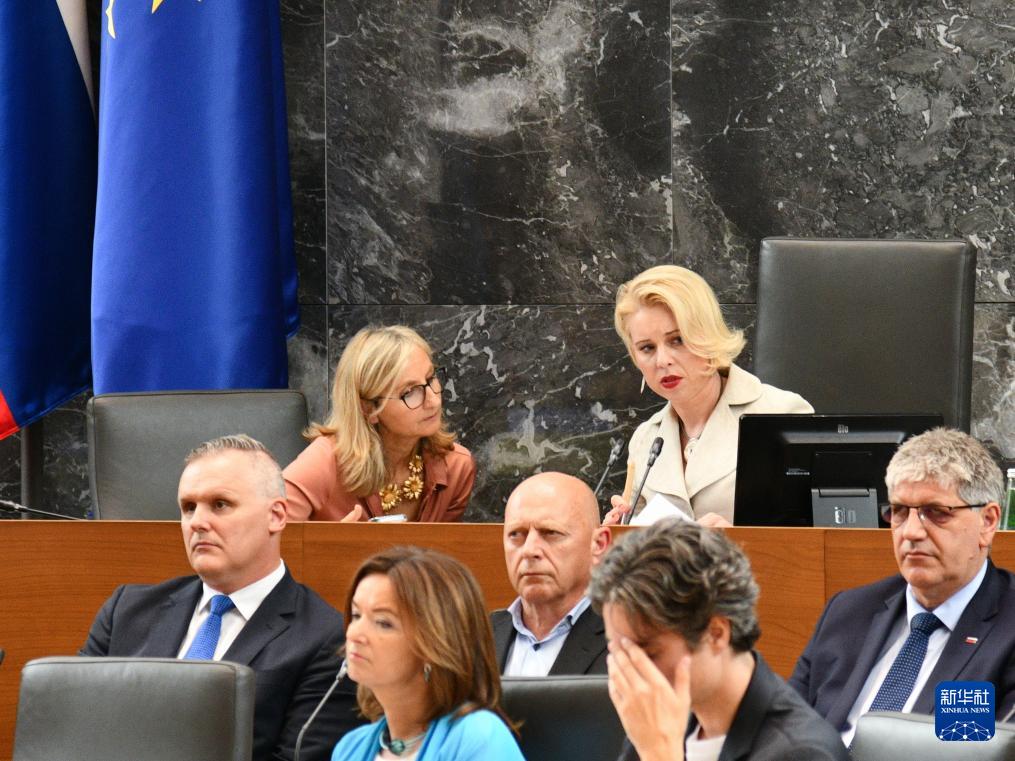 6月4日,斯洛文尼亞國民議會議長祖潘契奇(后右)在盧布爾雅那出席國民議會會議。
