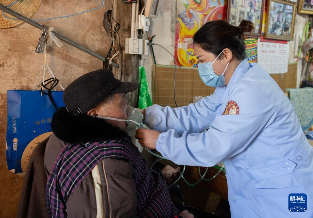 12月21日,浙江省諸暨市浬浦鎮(zhèn)中心衛(wèi)生院的網約護士上門為老人做霧化。