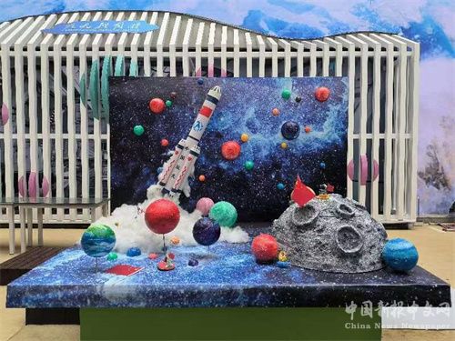 學(xué)校開展“探秘航天”跨學(xué)科整合課程,并在課程實(shí)施的過程中改造物理環(huán)境,將課程創(chuàng)新與空間建設(shè)相結(jié)合,形成了“航天園”等學(xué)校特有的課程和場景。聚焦“國之重器”,設(shè)置長征2號(hào)F模型,實(shí)操模擬火箭升空,打造立體空間站,從物理環(huán)境、虛擬環(huán)境和文化環(huán)境,傾力打造基于智能環(huán)境的“泛在學(xué)習(xí)空間”,播下航天火種,點(diǎn)燃飛天夢(mèng)想。