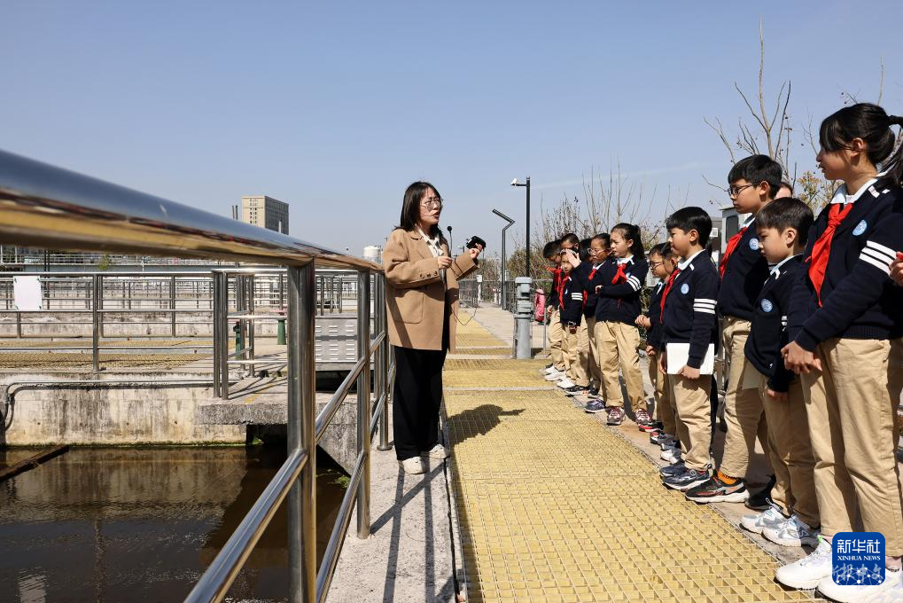 3月21日,浙江省東陽(yáng)市江北中心小學(xué)學(xué)生來(lái)到東陽(yáng)市污水處理廠了解污水處理知識(shí)。