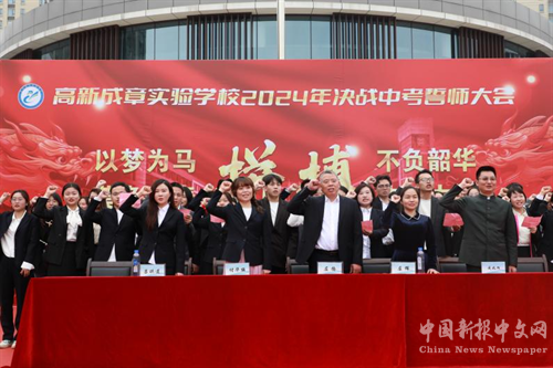 中國(guó)新報(bào)湖南訊(通訊員 龍彪 秦于欽 李倩)4月8日,衡陽(yáng)高新成章實(shí)驗(yàn)學(xué)校舉行了以“魚躍龍門登金榜,沖刺中考占鰲頭”為主題的2024年中考沖刺誓師大會(huì)。學(xué)校領(lǐng)導(dǎo)班子及八、九年級(jí)全體師生和家長(zhǎng)代表齊聚操場(chǎng)。