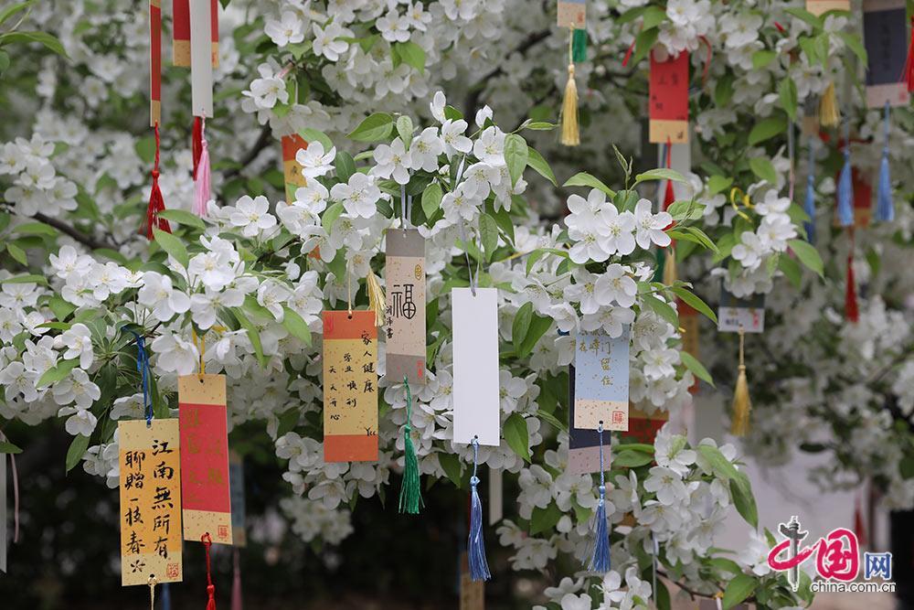 靜園一角的櫻花樹上掛滿了祈愿書簽。中國網(wǎng) 趙娜攝影