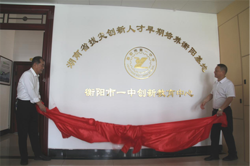 在辦公樓三樓,  賀中秋、陳永庚為創(chuàng)新教育中心揭牌。作為衡陽市唯一的湖南省拔尖創(chuàng)新人才早期培養(yǎng)基地,衡陽市一中創(chuàng)新教育中心師資力量全市一流,硬件設(shè)施全省一流,奧賽成績?nèi)械谝?。今日全新啟航,將承?dān)為衡陽、湖南、國家培育更多拔尖創(chuàng)新人才的重任。