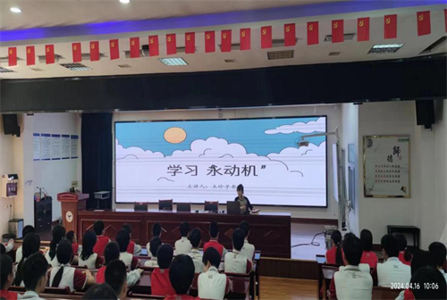 王珍子老師以“學習‘永動機’”為題,為初一年級全體潛質生上了一堂別開生面的心靈輔導課。課上,她以“如何打造學習動力”為切入點,結合講述晚唐詩人高適、滑雪冠軍谷愛凌、籃球傳奇科比等故事,以及分享身邊的后進生通過奮力拼搏華麗蛻變?yōu)樽吭缴膭钪竟适?,激發(fā)大家的學習內驅力。結合學生現狀以及存在問題,她分享了“培養(yǎng)興趣(興趣遷移)、確立目標理想、制定合理的學習計劃、有成就感的任務、用好學習資源、適當設置獎勵”等6個有效方法。學生們一邊認真傾聽,一邊認真記筆記。