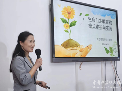 長沙教育學院對外培訓合作部主任,長沙市名師農村工作站站長兼班主任工作導師楊旭主任以“生命·自主教育模式建構與實施”為題做經驗分享。從生命自主、人格自立、心理自信、學習自主、管理自治五個維度,以黃佑生名師工作室研制的“三層六環(huán)”校本研修模式為載體,詮釋生命·自主教育的內涵以及實施策略。
