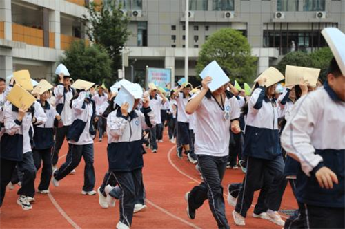 一分鐘后,“地震警報(bào)”信號(hào)解除,全校學(xué)生在各班老師和安全管理員的引導(dǎo)下按照緊急疏散路線從教學(xué)樓安全有序地向?qū)W校操場(chǎng)撤離。