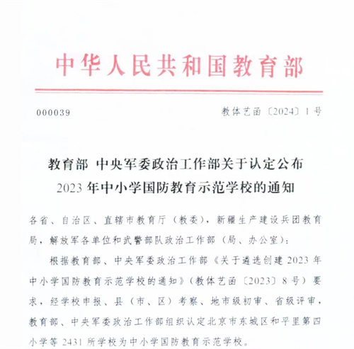 中國新報湖南訊(通訊員 劉蔣)近日,教育部、中央軍委政治工作部聯(lián)合印發(fā)的《關(guān)于認(rèn)定公布2023年中小學(xué)國防教育示范學(xué)校的通知》明確:根據(jù)教育部、中央軍委政治工作部《關(guān)于遴選創(chuàng)建2023年中小學(xué)國防教育示范學(xué)校的通知》(教體藝函〔2023〕8號)要求,經(jīng)學(xué)校申報、縣(市、區(qū))考察、地市級初審、省級評審,教育部、中央軍委政治工作部組織認(rèn)定衡陽市新民中學(xué)為中小學(xué)國防教育示范學(xué)校。