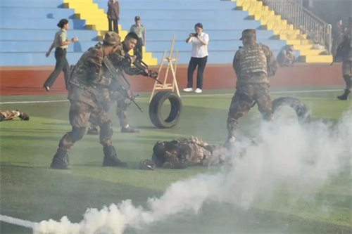 衡陽市新民中學(xué)作為一所飽受炮火洗禮的學(xué)校,從辦學(xué)之初就一直重視傳承紅色基因、厚植青少年崇軍尚武、固我國防的情懷。學(xué)校將軍事管理融入到學(xué)生的學(xué)習(xí)、生活之中,定期舉辦國防知識講座、國防教育主題班會、國防音樂課、國防拉練等多元化活動,同時學(xué)校還成立了國防特色班,構(gòu)建了完善的國防教育體系。自2016年以來,學(xué)校連續(xù)七年培養(yǎng)出了飛行員,并榮獲“國防教育特色學(xué)校”光榮稱號。