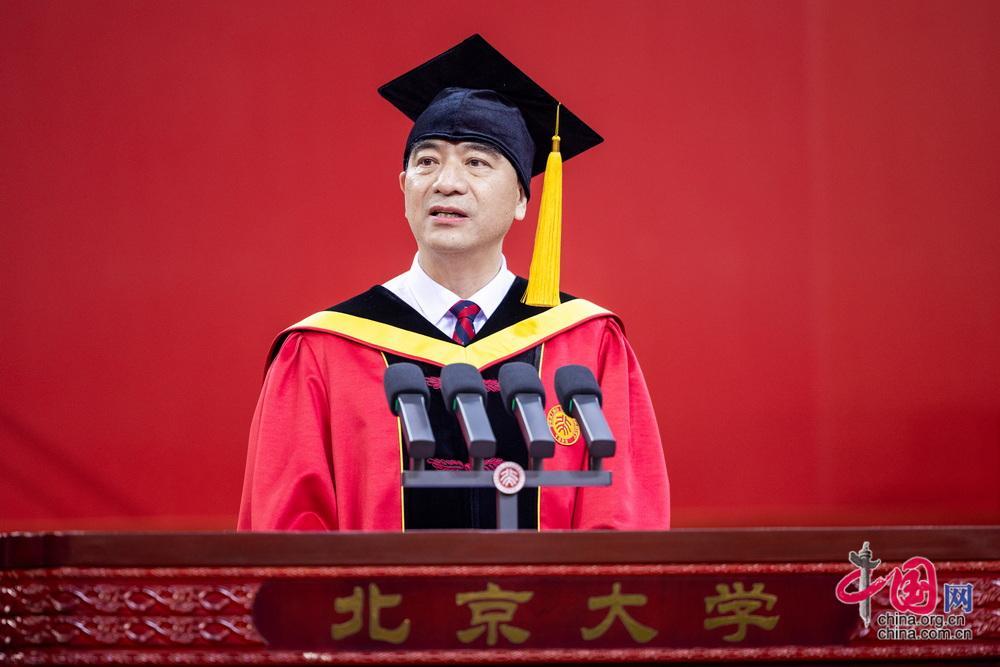 北京大學(xué)校長龔旗煌在致辭中對(duì)畢業(yè)生們寄予厚望,他希望大家勇做走在時(shí)代前列的北大人,擔(dān)負(fù)起強(qiáng)國建設(shè)的歷史重任。中國網(wǎng)記者 鄭亮攝