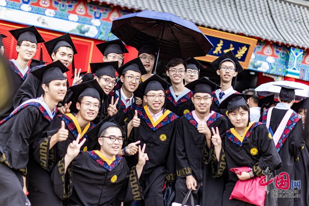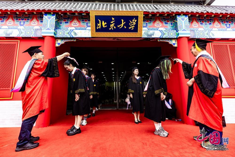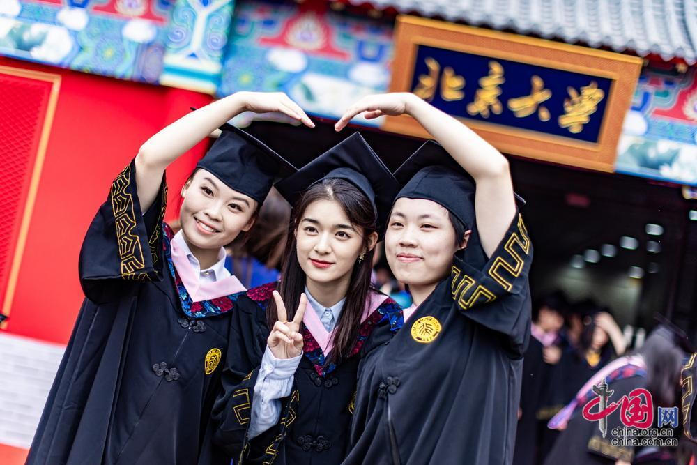 參加典禮的北京大學(xué)本科畢業(yè)生拍照留念。中國網(wǎng)記者 鄭亮攝
