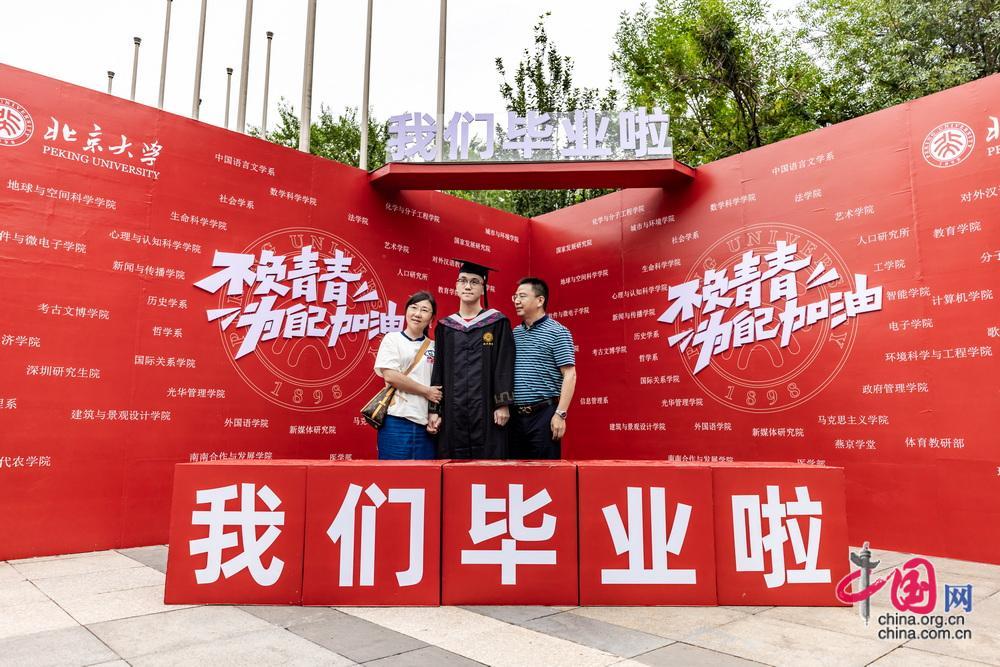 參加典禮的北京大學(xué)本科畢業(yè)生與家人合影留念。中國網(wǎng)記者 鄭亮攝