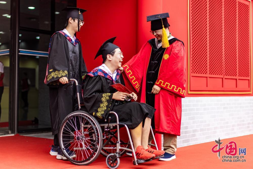 畢業(yè)生導(dǎo)師與學(xué)生交流并送上祝福。中國網(wǎng)記者 鄭亮攝