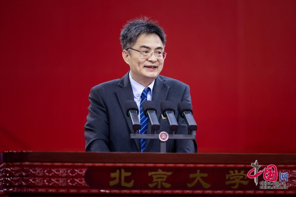 北京大學(xué)中國語言文學(xué)系教授程蘇東向畢業(yè)生們送上了三句先秦經(jīng)典中的話語,他希望同學(xué)們?cè)诒究粕牡慕K點(diǎn)處回顧求學(xué)的收獲,思考佇留的意義,積蓄前行的力量。中國網(wǎng)記者 鄭亮攝