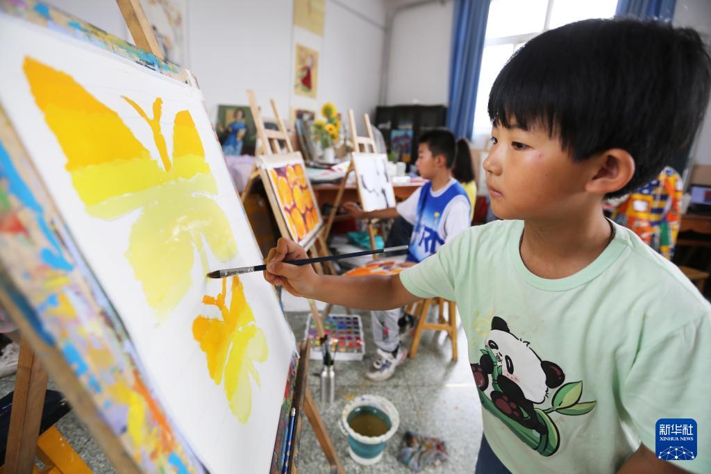 7月17日,學(xué)生在甘肅省定西市安定區(qū)青少年學(xué)生校外活動(dòng)中心練習(xí)繪畫。