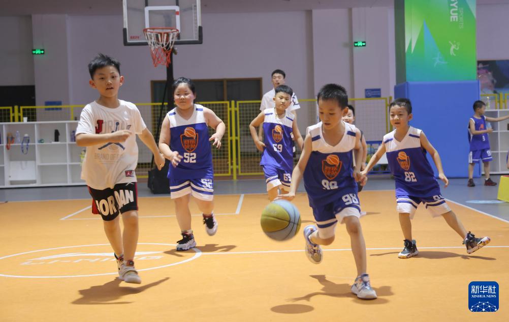 7月17日,小朋友在山東省臨沂市李寧運(yùn)動(dòng)中心一家籃球訓(xùn)練俱樂(lè)部進(jìn)行對(duì)抗訓(xùn)練。