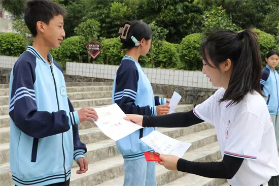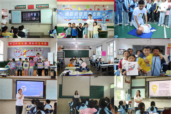 紅色教育,支教隊(duì)以“古田軍號(hào)”為主線,采用觀影、討論及搶答等形式,深刻闡釋紅色故事精髓,強(qiáng)化學(xué)生愛(ài)國(guó)情懷與社會(huì)責(zé)任感。心理教育,依托清華大學(xué)社會(huì)科學(xué)院特聘心理講師陳璽竹老師的指導(dǎo),開(kāi)展青春期情緒認(rèn)知與管理課程,助力學(xué)生科學(xué)應(yīng)對(duì)心理狀態(tài)變化,護(hù)航健康成長(zhǎng)。營(yíng)養(yǎng)健康教育,攜手湯臣倍健,聚焦黃蓮鄉(xiāng)特色飲食,傳授膳食營(yíng)養(yǎng)知識(shí),引導(dǎo)學(xué)生樹(shù)立均衡飲食觀念,培養(yǎng)健康飲食習(xí)慣。傳統(tǒng)文化教育,以漆扇制作、扎染為載體,讓學(xué)生親身體驗(yàn)中華文化魅力,增強(qiáng)文化自信與傳承意識(shí)。災(zāi)難應(yīng)對(duì)與急救指南,結(jié)合理論與實(shí)踐,教授心肺復(fù)蘇、海姆立克急救法等技能,有效提升學(xué)生應(yīng)急自救能力,該課程獲四川大學(xué)災(zāi)后重建與管理學(xué)院應(yīng)急救援學(xué)會(huì)鼎力支持。