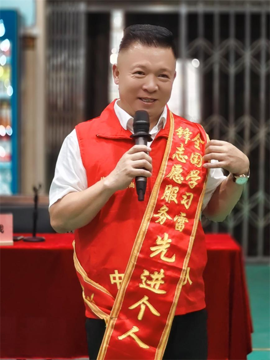 早上九點,在衡陽市七中校長湯克的引領(lǐng)下,唐備戰(zhàn)同志身披紅色綬帶走入會場,全場掌聲雷動。