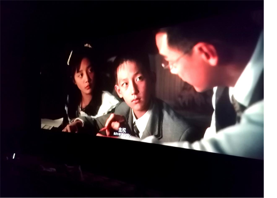 銀幕中容金珍給兒女講述國(guó)家主權(quán)。