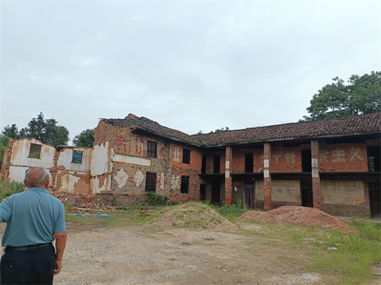 學校的內部布局是:東院是完小部,從一條又高又大又古老的石大門進入,前半間為前廳,墻面上寫有“教育為無產階級政治服務,教育必須與生產勞動相結合” 的時髦標語;整個房屋平面圖似是一個橫放的條盤:它由前后對稱的兩列各8根的大木柱頂立、再經中庭間隔、兩邊分別有一個石邊天井而形成兩個“回” 字型的四合院走廊;前、后兩排各有9間房子,前面的9間房子,分別是各班的教研室;后面的9間房子,全用杉木板裝飾成“鼓面墻”, 從右到左,分別是高小部的33、34、35、36、37班和初小部的四年級、三年級、二年級和一年級,共9個班,約450人。