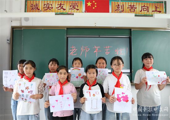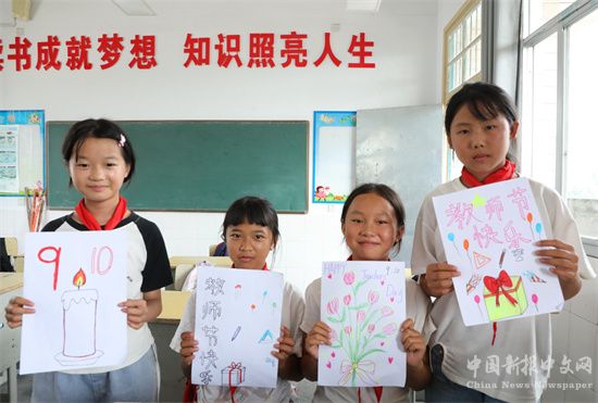 9月6日,在湖南省保靖縣野竹坪小學(xué),學(xué)生給老師送別樣的節(jié)日禮物。教師節(jié)到來之際,該校學(xué)生們手工制作花束、賀卡等特色禮物獻給老師,祝福老師節(jié)日快樂。(俞采華 王夢妮)